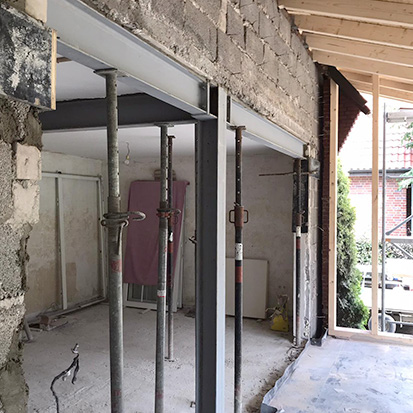 Tragende Wände entfernen, Träger einziehen, das wird in Zusammenarbeit mit ortsansässigen Statikern geplant und umgesetzt. Reparaturen an Fassaden, z. B. Versicherungsschäden, werden kurzfristig angeboten und instand gesetzt.